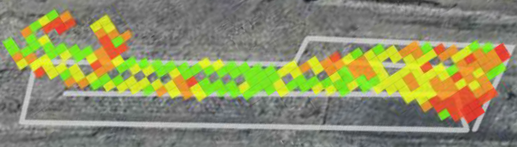 RCM Heat Map showing the 700m section transformation from high-resistance (red) to high-efficiency (green).